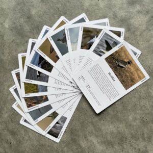 Fuglaspilið er í anda spilsins „Veiðimaður“ þar sem markmiðið er að safna fjögurra spila samstæðum. Í stað hefðbundinna spila er spilað með íslenskar fuglategundir. Á spilunum eru upplýsingar um  þjóðtrú tegundanna, latínuheiti, búsvæði og ætt. Spilið er hugsað til fróðleiks og skemmtunar.