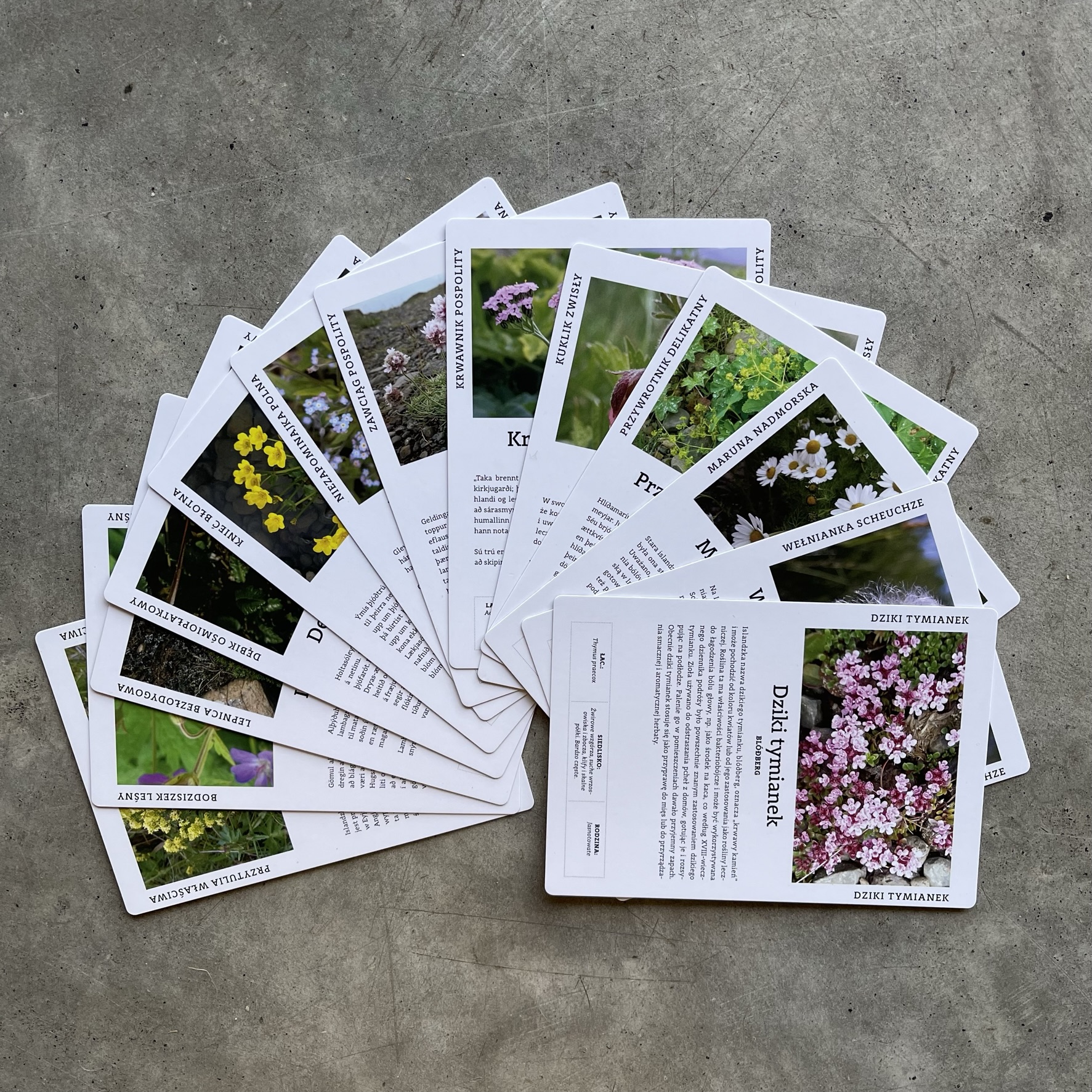 tradycyjnych kart, karty przedstawiają islandzkie rośliny.