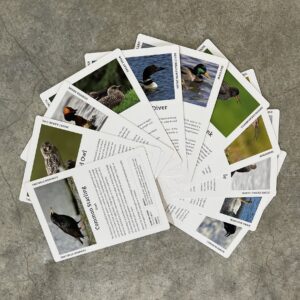 Fuglaspilið (annar stokkur) er til á ensku. Spilið er í anda spilsins “veiðimaður” þar sem markmiðið er að safna fjögurra spila samstæðum en í stað hefðbundinna spila þá er spilað með íslenskar fuglategundir. Á spilunum eru upplýsingar um þjóðtrú og nytjar, latínuheiti, búsvæði og ætt. Spilið er hugsað til fróðleiks og skemmtunar. Tegundaheitið kemur einnig fyrir á íslensku.
